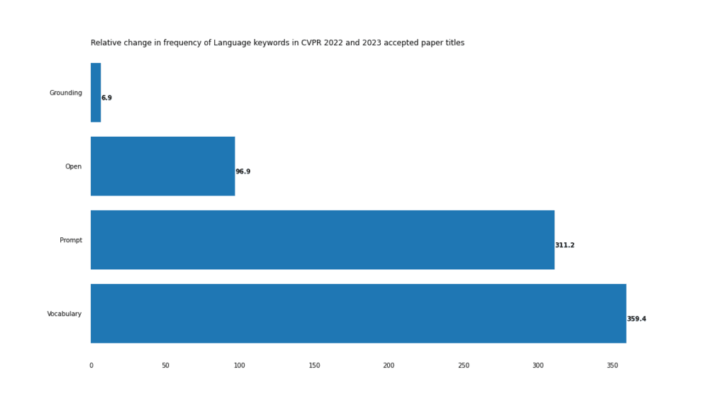 这在视觉-语言任务中尤其明显,正如「开放」、「提示」和「词汇」的急剧上升所表明的那样。