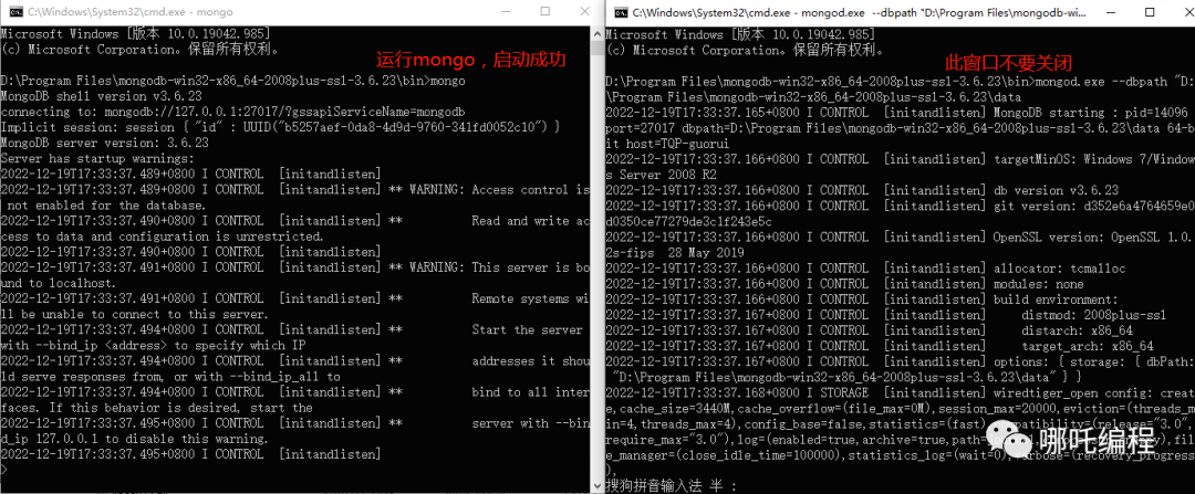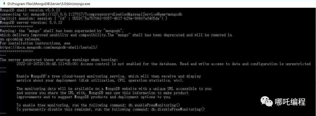 注意一点,在重新启动时,执行mongod.exe --dbpath "D:\Program Files\mongodb\data的窗口不要关闭。