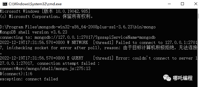 2、mongodb由于目标计算机积极拒绝,无法连接