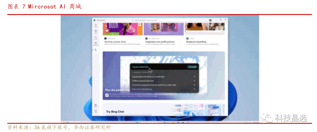 全球最强操作系统已加入AI助手。Windows11的任务栏将接入 Copliot图标。用户点击图标就会在屏幕右侧出现 Copilot 对话框,对当前正在使用的应用和网页内容进行分析解释归纳。ChatGPT与微软强强联手,开启搜索引擎新篇章。微软在Edge浏览器引入了365Copilot功能;Microsoft Store有望成为重要的AI原生应用服务提供方,同时,微软Azure AI Studio上线,包揽AI模型和应用的“生产全流程”。此外,Microsoft Fabric震撼发布,有望成为AI时代的数据分析工具。此外,微软致力于与英伟达等合作伙伴通力合作,共同合作加速发展由人工智能而驱动的未来。