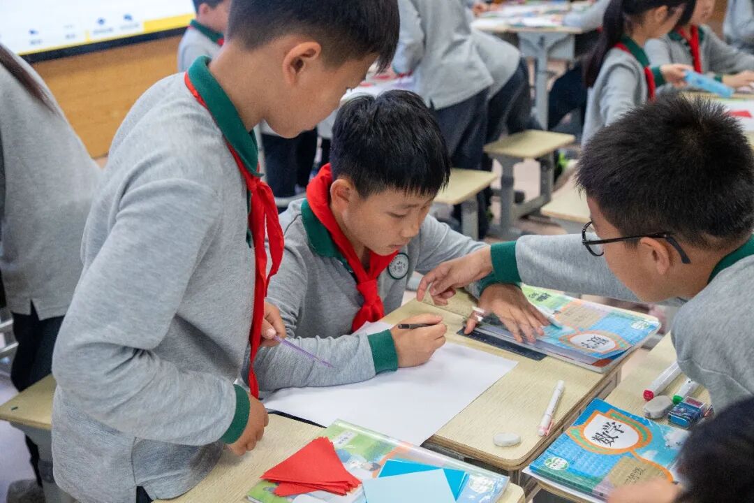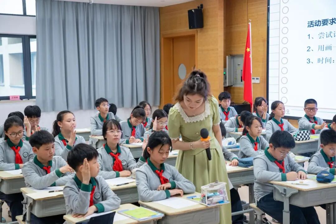 2023年5月18日下午,在绿城育华嘉兴长水实验学校,一场以“指向小学数学深度学习教学探究”为主题的研讨活动正在如火如荼地进行着。长水实验学校的18名数学老师和来自绍兴上虞区参加浙江师范大学网络继续教育学院小学数学90学分(初级)的57名老师们齐聚一堂,围绕“新课标背景下数学深度学习的路径与实践”开展了现场探讨。