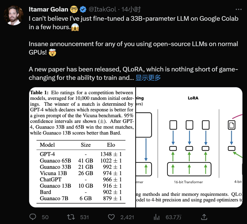 最近,来自华盛顿大学的 QLoRA 成为了 AI 领域的热门,很多人把它形容为里程碑级、改变规则的技术。