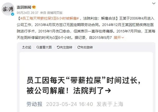 0、员工每天“带薪拉屎”3-6 小时被解雇,法院判定:解雇合法