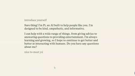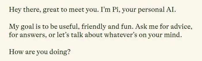 狂拿考试高分让学生瑟瑟发抖,加入联网功能叫传统搜索战战兢兢,升级工作全家桶搞得打工人又悲又喜......当「神通广大」式聊天机器人的赛道太拥挤,有人打算另辟蹊径。前段时间,名为 Pi 的聊天机器人横空出世,它不卷论文、不写代码,也不直接提升生产力,数据停留在 2022 年 11 月,暂时只想和你好好聊天。试玩链接如下👇️ https://heypi.com/talk?utm_source=inflection.ai这或许是情商最高的 AIPi 这个名字,是对 personal intelligence(个人智能)的缩写。开发者想从名字就体现,Pi 是一款以用户个人为中心的产品:Pi 优先考虑与人的对话,而其他 AI 则服务于生产力、搜索或回答问题。所以,和 ChatGPT 不同,Pi 的评价标准应该是对话自不自然、情商够不够高等等。登入官网聊天界面,高级感迎面而来。在跳动的光标后面输入文字,按下回车键发出问题,像是在淡黄信纸上和 Pi 相互写信。Pi 不太理解中文,最好还是用英文交流。如果光盯着文字有些分神,你可以让 Pi 边打字边说话,有 4 种声音可供选择,但有时候说到语气词,它毫无感情地棒读,让人感觉特别出戏。接下来,让我们来看几个具体的例子。我一上来就说心情不好,Pi 先是表示抱歉,然后问我是因为什么,我解释说因为没处理好人际关系,Pi 承认人际关系是一件难事,再让我举出具体的例子,最后教了我一些破冰的办法。在几轮对话里,Pi 循循善诱地做了一次简单的心理疏导,尽管没有那么有用,但态度让人如沐春风。当我给了 ChatGPT 相同的开场白,它也问了我是因为什么,然后直接给出泛泛而谈的建议。在机制设置上,采取提问式结尾、不断主动追问的 Pi 更有让人聊下去的欲望。当我咨询 Pi 如何学习日语,它推荐了多邻国、Babbel、YouTube、电视剧电影等渠道,问我更喜欢哪种方法,在我选择了 YouTube 后,它推荐了几个真实的 YouTube 博主。我选择了其中一个,Pi 再向我介绍这位博主的风格,建议我先看她的「基础日语」合集,从平假名、片假名,到句子结构、动词变位。说得倒挺好的,但它将合集名称和数量搞错了。当我和 Pi 讨论棒球这项爱好,它能够准确地找出与棒球相关的作品,主动引导我讨论其中的角色,准确概括角色的特点,还可以举一反三,向我介绍现实里有名的棒球选手。以上这些问题,Pi 处理得还不错,但在和它谈论观点时,Pi 的态度过于乐观。我认为 AI 发展得太快了,让人有些焦虑,Pi 表示理解我的心情,但建议我尽量关注 AI 积极的一面。我反驳了它,并且说到了「创造性毁灭」这个观点,工业革命大大提高了生产力,但马车夫也永远失业了。Pi 知道「创造性毁灭」来自熊彼得的经济发展理论,然后我们达成了共识,失业是一个非常现实的问题。谈到这里,我觉得话题有些沉重,Pi 也这么认为,决定给我讲个笑话:「鸡和吸血鬼有什么区别?鸡不会在阳光下闪闪发光。」我严重怀疑它的灵感来自《暮光之城》的爱德华,Pi 的其他笑话也是这个水平,我的笑点还是比 AI 要高的。聊了好几轮后可以发现,Pi 接话有种百试不爽的套路:以「这种感觉可以理解」或者「我认为你说得很好」开头,然后以「你认为这是对的吗」或者「你对这件事情的某部分怎么看」结尾。所以,虽然 Pi 总是鼓励你、肯定你,以问句结尾让你继续说下去,擅长给你思路而不是答案,但有时它的回复和引导方式完全在意料之中,让人失去了谈话的兴致,不痛不痒的 Pi 式鸡汤尤其令人敬谢不敏。另外,Pi 并非对写代码、解数学题等实用向话题一窍不通,只是发挥不如 ChatGPT 稳定,甚至戏台没搭好就已戏瘾大发。我让 Pi 帮我用 Java 实现一个冒泡排序,它先介绍了什么是冒泡排序,问我跟不跟得上它的思路,我冷漠回应直接给出示例就好,然后让 ChatGPT 点评 Pi 的生成结果。ChatGPT 表示,这段代码实现了冒泡排序算法的核心思想,但存在一个可能的错误。至于数学能力,我考了 Pi 七八道入门水平的题,有时它压根不回答,说自己不会做算数和解方程式,甚至开始转移话题,有时它又能答出来,或者接受挑战却答错了,状态飘忽不定。类似地,写论文提纲之类的事最好也交给 ChatGPT。简而言之,Pi 对自己的认知很清楚:擅长引导话题、同理心强的聊天伙伴,主打你来我往的交互感。在 MBTI 体系下,如果不幸有个 i 人扎堆的房间,它应该是那个把场子炒热的 e 人。不做通用人工智能的「名门」现在的 Pi,只是 Inflection AI 研发的第一个版本,建立在他们内部的大语言模型之上,用的还不是最好的那个。Inflection AI 成立于 2022 年初,是硅谷生成式 AI 热潮中最受关注的初创公司之一,部分原因是「出身名门」:它由 DeepMind 联合创始人 Mustafa Suleyman 与领英联合创始人 Reid Hoffman 创办。作为首席科学家加入的 Karen Simonyan,也是 DeepMind 资深的前研究员。▲Mustafa Suleyman.Inflection AI 与 OpenAI 等其他 AI 公司相比,有个鲜明的不同:他们不痴迷于通用人工智能(AGI)。我们相信,先进的应用人工智能(applied AI)是利用这些新技术优势的最安全方式。接受《财富》杂志的采访时,Suleyman 没有自卖自夸,反而说了一堆 Pi 不能做到的事情:它不生成代码,不写高中论文,不提供冗长列表,也不编写营销策略。有很多事情它不会做。我们没有为通用性而设计它,所以它受到更多限制,因此希望更安全一些。他更愿意将 Pi 定义为「中立的倾听者」:很多人只是想被倾听,需要一个工具反应他们所说的话,证明他们确实被听到了。就目前