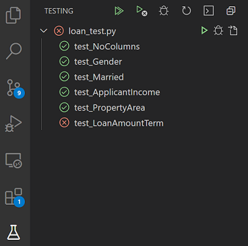 # Test for checking if Loan Amount is more than 500def test_LoanAmountTerm():assert df[df['Loan_Amount_Term']>600].shape[0]==0