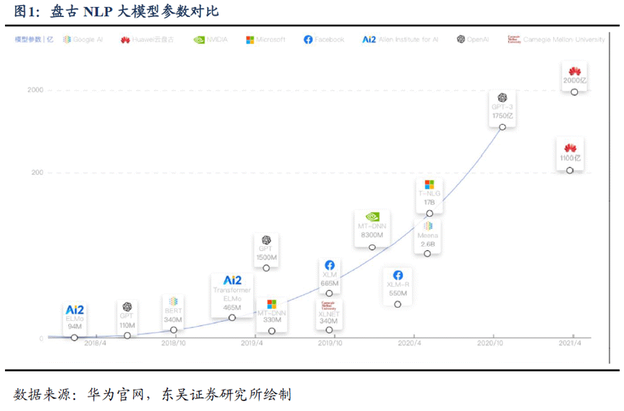 浙商证券此前披露的信息显示,华为在训练千亿参数的盘古大模型时调用了超过 2000 块的昇腾 910 芯片,进行了超 2 个月的数据训练能力。华为内部称,每年大模型训练调用 GPU / TPU 卡超过 4000 片,3 年的大模型算力成本高达 9.6 亿元人民币。