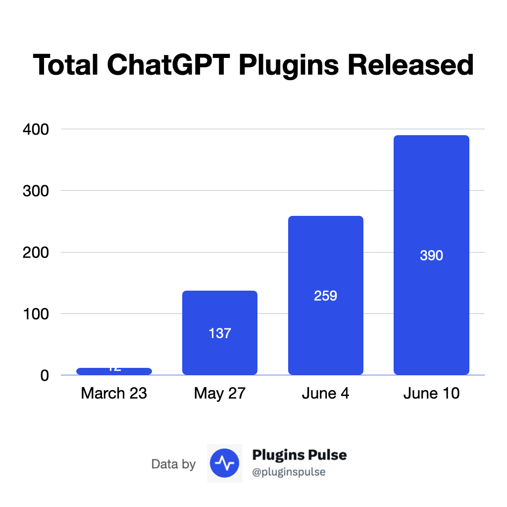 截止到6月18日,ChatGPT插件的数量已经达到了惊人的461个。