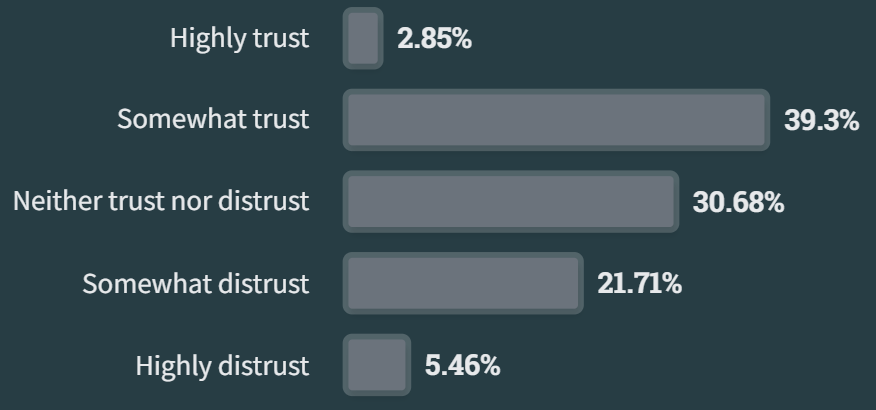 - 对 AI 工具的信任度:39% 的人对 AI 工具表示有些信任