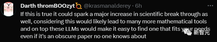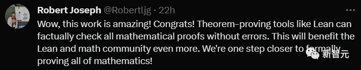 这个发现是AI在数学领域的最佳应用,找到了一个非常现实的角度让AI能为数学研究做出了贡献。数学证明真的是为大语言模型量身定制地任务,因为结果的有效性是可以完全确保的。网友们除了狂赞这个项目对于数学研究的加速,纷纷脑洞大开,幻想了很多未来的可能性。Cue了马老板,数学的飞速发展将使得人类进入一个科幻小说中才存在的世界。因为数学是科学之母,数学的飞速发展将导致所有的自然科学不断加速。数学将成为第一个看到人工智能实现重大突破的科学学科,这确实是有道理的。Kaiyu Yang(杨凯峪)