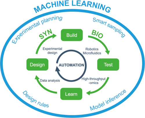 ▲ 图 1 所示。合成生物学、机器学习和自动化可以相互补充。它们结合在一起,可以显著提高我们的生物工程能力,并产生新的生物医学应用。
