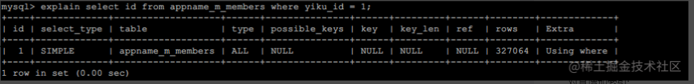 csharp复制代码select id from appname_m_members where yiku_id = :1