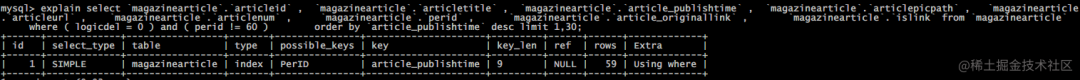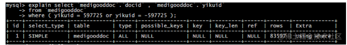 匹配范围 rows 从2w缩小到59
