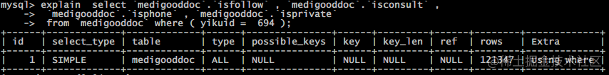 go复制代码select `medigooddoc`.`isfollow` , `medigooddoc`.`isconsult` ,