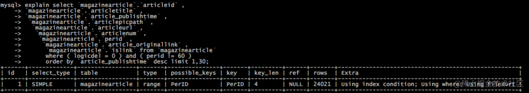 order by `article_publishtime` desc limit 1,30;
