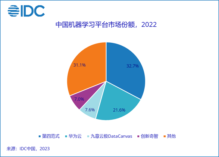 机器学习平台市场,2022年机器学习开发平台市场规模达35.4亿元人民币, 相比2021年同比下降4.9%。该市场呈现出明显的头部厂商规模化效应,前5名的厂商占据69.9%的市场份额。
