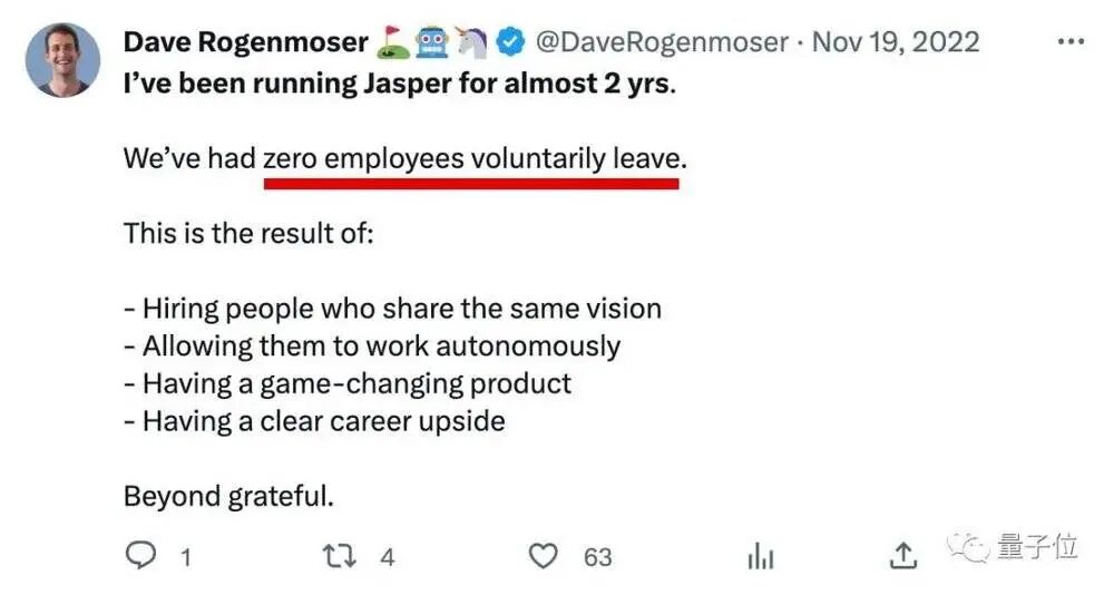 2022年11月,Dave还发了一条推文,表示公司没有一个员工愿意离开。