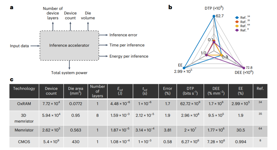 还研究了已成功应用于解决计算问题的新型材料和器件:用于矩阵-向量乘法的非易失性存储器、用于随机计算的磁性隧道结,以及用于可重构逻辑的电阻存储器。同时还提出了度量标准,以促进机器学习任务的不同解决方案之间比较,并突出新材料和设备可能的潜在应用。