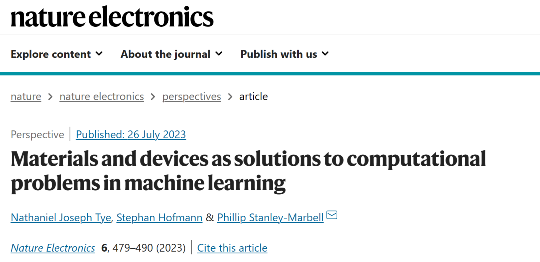 Tye, N.J., Hofmann, S. & Stanley-Marbell, P. Materials and devices as solutions to computational problems in machine learning. Nat Electron 6, 479–490 (2023).