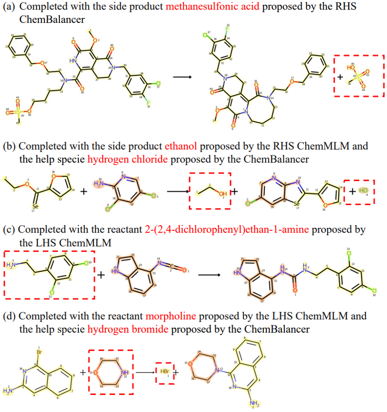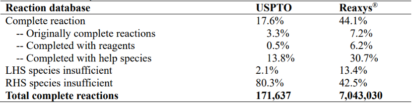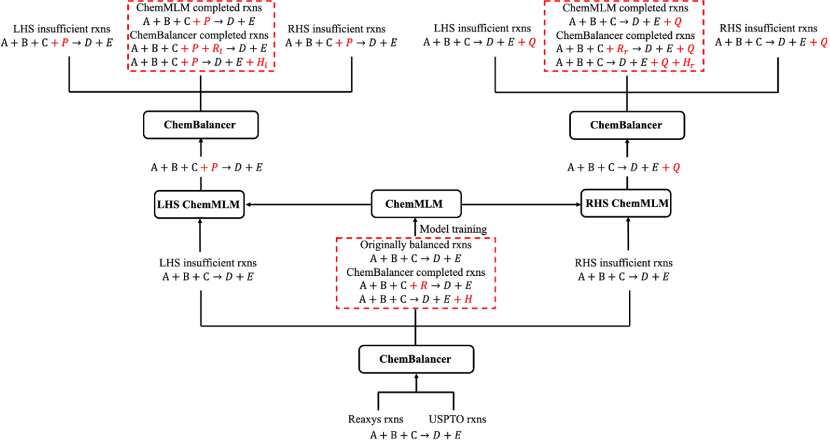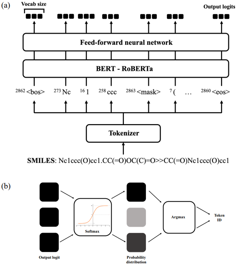 [1] Zhang, Chonghuan et al. “Completing and balancing database excerpted chemical reactions with a hybrid mechanistic-machine learning approach” ChemRxivpreprint (2023). DOI: 10.26434/chemrxiv-2023-hrgfw.[2] Schwaller, Philippe et al. "Extraction of Organic Chemistry Grammar from Unsupervised Learning of Chemical Reactions." Sci. Adv. 7.15 (2021): eabe4166. DOI: 10.1126/sciadv.abe4166.[3] Liu, Yinhan et al. “RoBERTa: A Robustly Optimized BERT Pretraining Approach” arXivpreprint (2019). DOI: 10.48550/arXiv.1907.11692[4] Sennrich, Rico et al. “Neural Machine Translation of Rare Words with Subword Units” arXiv preprint (2016). DOI: 10.48550/arXiv.1508.07909