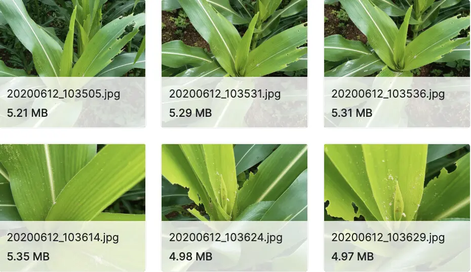 收集了部分被秋粘虫等害虫感染的玉米叶片图像。有 Healthy 和 Infected 文件夹,每个文件夹都包含各自的图像。此外,还使用 VoTT 为受感染的图像准备了注释文件。