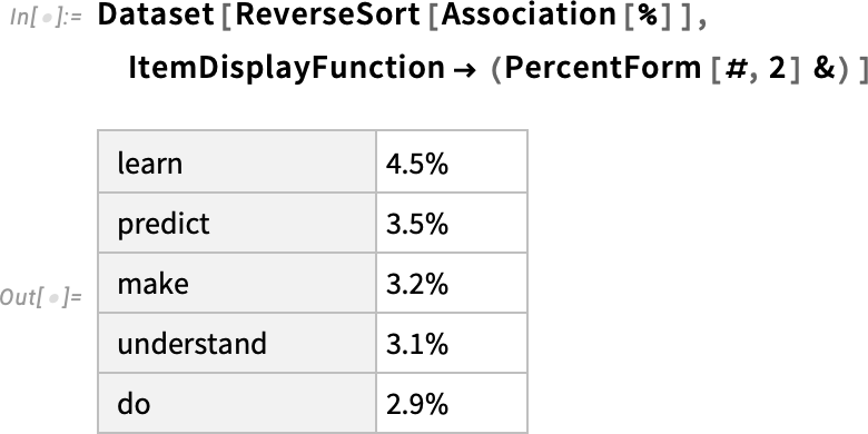 值得注意的是,当 ChatGPT 做一些事情,比如写一篇文章时,它所做的基本上只是反复询问 “鉴于到目前为止的文本,下一个词应该是什么?” —— 而且每次都增加一个词。(更准确地说,正如我将解释的那样,它在添加一个 “标记”,这可能只是一个词的一部分,这就是为什么它有时可以 “编造新词”)。在每一步,它得到一个带有概率的单词列表。但是,它究竟应该选择哪一个来添加到它正在写的文章(或其他什么)中呢?人们可能认为它应该是 “排名最高” 的词(即被分配到最高 “概率” 的那个)。但是,这时就会有一点巫术开始悄悄出现。因为出于某种原因 —— 也许有一天我们会有一个科学式的理解 —— 如果我们总是挑选排名最高的词,我们通常会得到一篇非常 “平淡” 的文章,似乎从来没有 “显示出任何创造力”(甚至有时一字不差地重复)。但是,如果有时(随机的)我们挑选排名较低的词,我们会得到一篇 “更有趣” 的文章。这里有随机性的事实意味着,假如我们多次使用同一个提示,我们也很可能每次都得到不同的文章。而且,为了与巫术的想法保持一致,有一个特定的所谓 “温度” 参数(temperature parameter),它决定了以什么样的频率使用排名较低的词,而对于论文的生成,事实证明,0.8 的 “温度” 似乎是最好的。(值得强调的是,这里没有使用任何 “理论”;这只是一个在实践中被发现可行的问题)。例如,“温度” 的概念之所以存在,是因为恰好使用了统计物理学中熟悉的指数分布,但没有 “物理” 联系 —— 至少到目前为止我们如此认为。)在我们继续之前,我应该解释一下,为了论述的目的,我大多不会使用 ChatGPT 中的完整系统;相反,我通常会使用更简单的 GPT-2 系统,它有一个很好的特点,即它足够小,可以在标准的台式电脑上运行。因此,对于我展示的所有内容,包括明确的沃尔弗拉姆语言(Wolfram Language)代码,你可以立即在你的计算机上运行。(点击这里的任何图片都可以复制其背后的代码 —— 译者注:请查看文末的 “原文链接”,在其中点击图片获取代码)。例如,这里是如何获得上述概率表的。首先,我们必须检索底层的 “语言模型” 神经网:稍后,我们将看看这个神经网的内部,并谈谈它是如何工作的。但现在我们可以把这个 “网络模型” 作为一个黑匣子应用于我们迄今为止的文本,并要求按概率计算出该模型认为应该选择的前五个词:这就把这个结果变成了一个明确的格式化的 “数据集”:如果重复 “应用模型” —— 在每一步中加入概率最高的词(在此代码中被指定为模型的 “决定”),会发生什么:如果再继续下去会发生什么?在这种情况下(“零温度”),很快就会出现相当混乱和重复的情况:但是,如果不总是挑选 “顶级” 词,而是有时随机挑选 “非顶级” 词(“随机性” 对应 “温度” 为 0.8)呢?人们又可以建立起文本:而每次这样做,都会有不同的随机选择,文本也会不同 —— 如这 5 个例子:值得指出的是,即使在第一步,也有很多可能的 “下一个词” 可供选择(温度为 0.8),尽管它们的概率下降得很快(是的,这个对数图上的直线对应于 n-1 的 “幂律” 衰减,这是语言的一般统计的特点):那么,如果继续下去会发生什么?这里有一个随机的例子。它比顶层词(零温度)的情况要好,但顶多还是有点奇怪:这是用最简单的 GPT-2 模型(来自 2019 年)做的。用较新和较大的 GPT-3 模型,结果更好。这里是用同样的 “提示” 产生的顶部文字(零温度),但用最大的 GPT-3 模型: