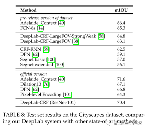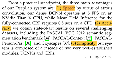 image-20230712213431978- 速度更快:借助atrous算法(空洞卷积算法),密集的DCNN在NVidia Titan X GPU上以8帧/秒的速度运行。