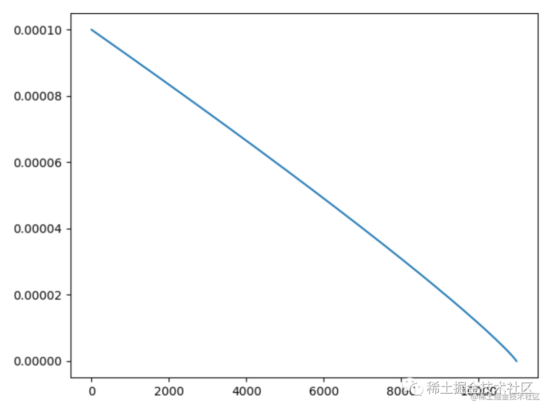 其中power是一个超参,默认为0.9。为初始学习率,为当前迭代的step数,为训练过程中总的迭代步数。poly策略的变化曲线大致如下图所示: