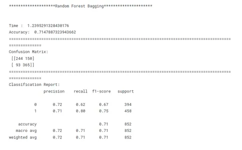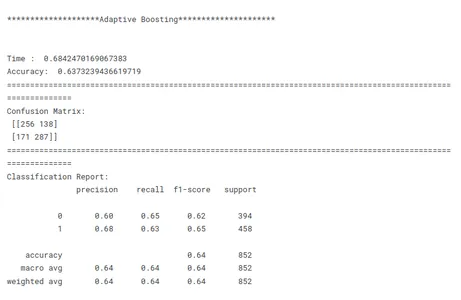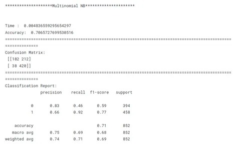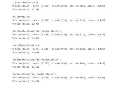 # Model building lr =LogisticRegression() mnb=MultinomialNB() dct=DecisionTreeClassifier(random_state=1) knn=KNeighborsClassifier() rf=RandomForestClassifier(random_state=1) ab=AdaBoostClassifier(random_state=1) m =[lr,mnb,dct,knn,rf,ab] model_name=['Logistic R','MultiNB','DecTRee','KNN','R forest','Ada Boost']