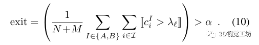 对于给定层, 如果ci>λ,则认为一个点是有信心的,如果所有点的充分率α是可信的,则停止推理: