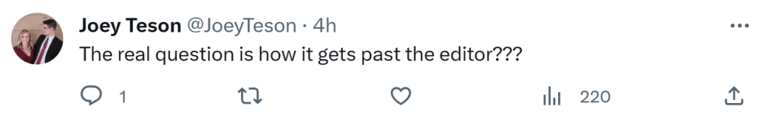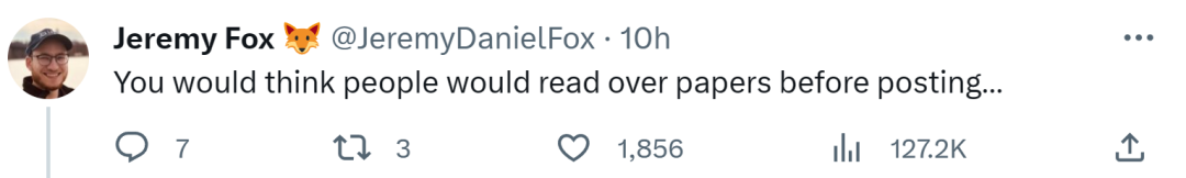 对于这位斯坦福本科生的发现,有人揶揄道,你不会以为人们在发表论文之前会再通读一遍吧。也有人再补了一刀,在发表之前让 ChatGPT 再读一遍。