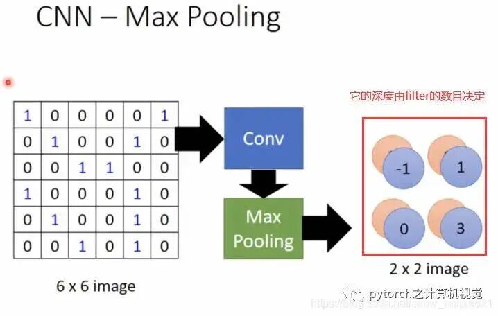 经过一次卷积一次池化,将原来6x6的image转化成2x2的image