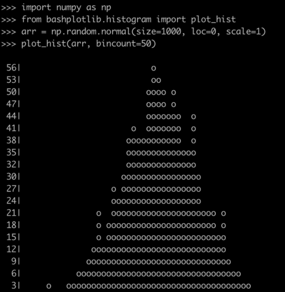 终端版的 Matplotlib。尤其是当你想要在没有 GUI 界面的服务器上画图时,你就知道 Bashplotlib 的强大了。