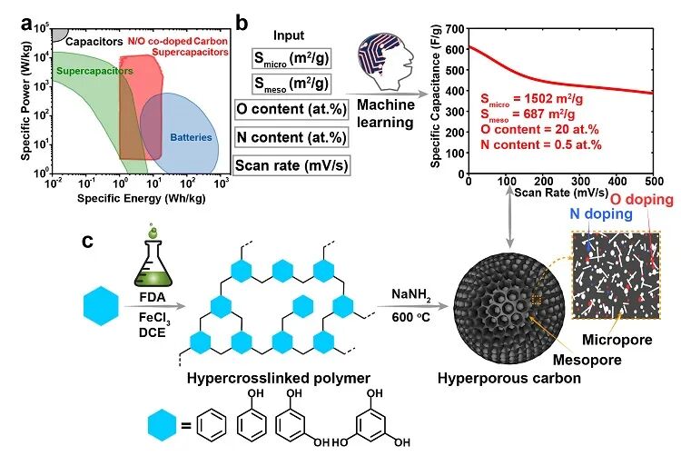 利用机器学习预测并实现了具有超高比电容碳材料的合成。