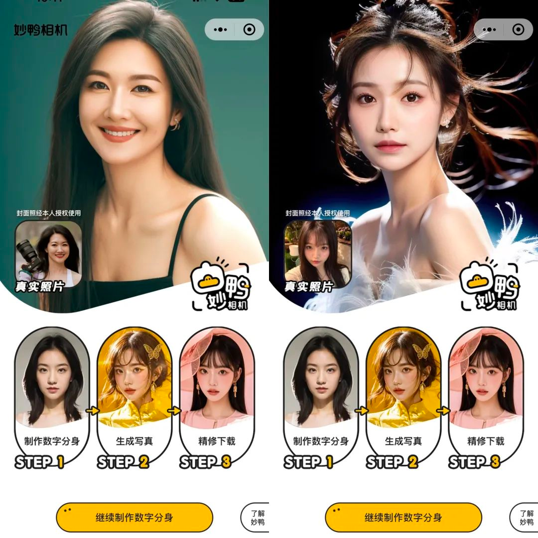 最近,一些 AI 生成视觉形象的应用爆火,例如只需 9 块 9 就能生成个人写真的「妙鸭相机」。由于操作简单,不涉及任何技术操作,很多用户都纷纷在朋友圈晒出妙鸭相机生成的写真。