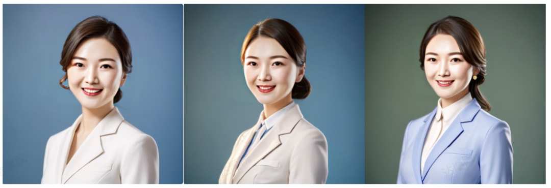用户仅需提供最低三张照片,就可以获得特定风格的个人写真。例如,生成商务证件照: