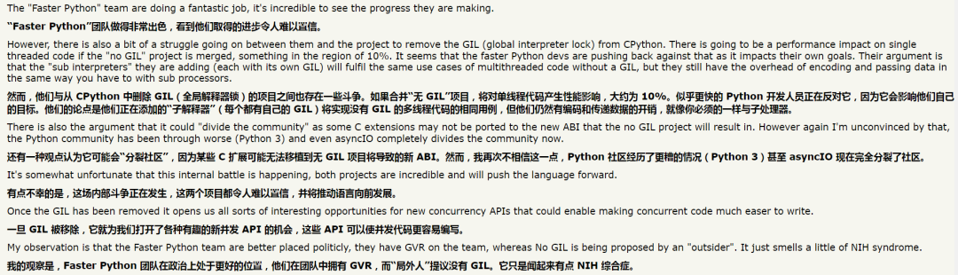 他认为 Faster Python 团队在这场斗争中在“政治”上处于更好的位置。