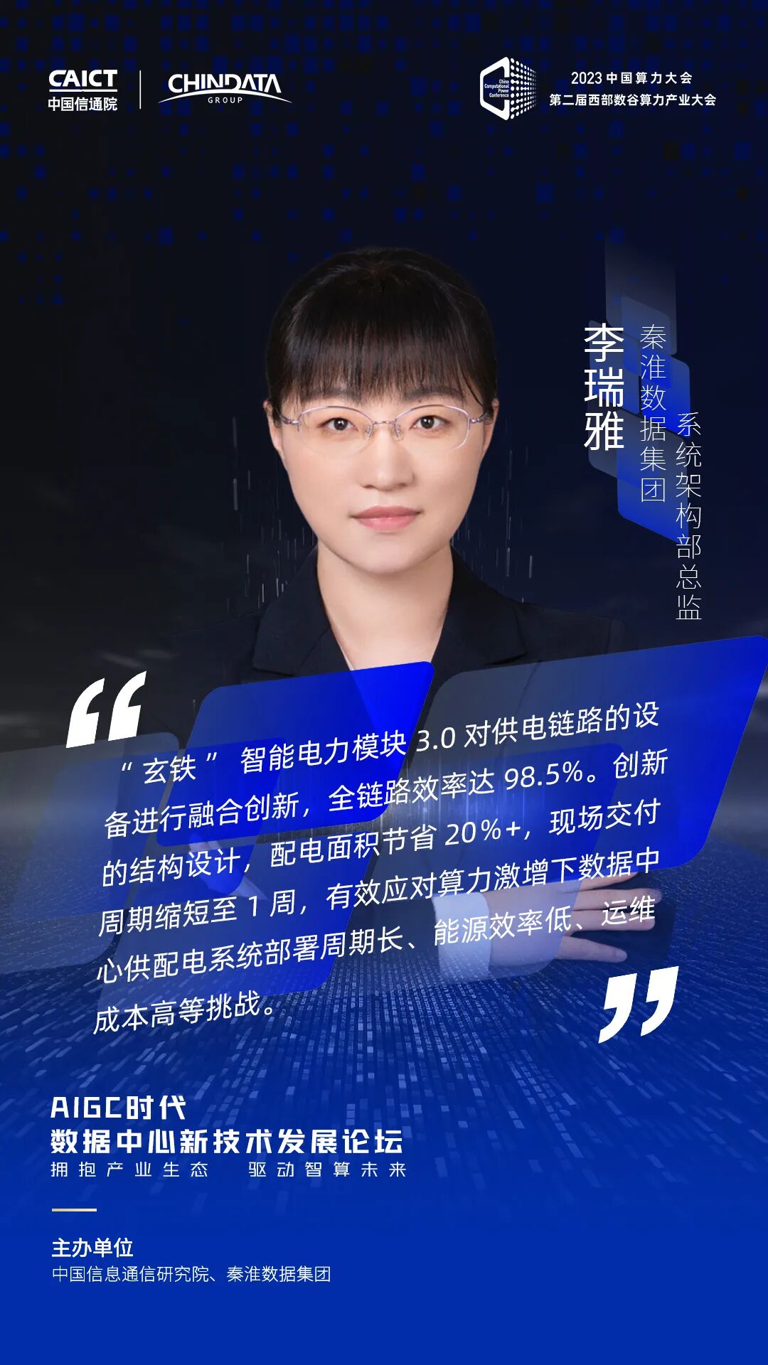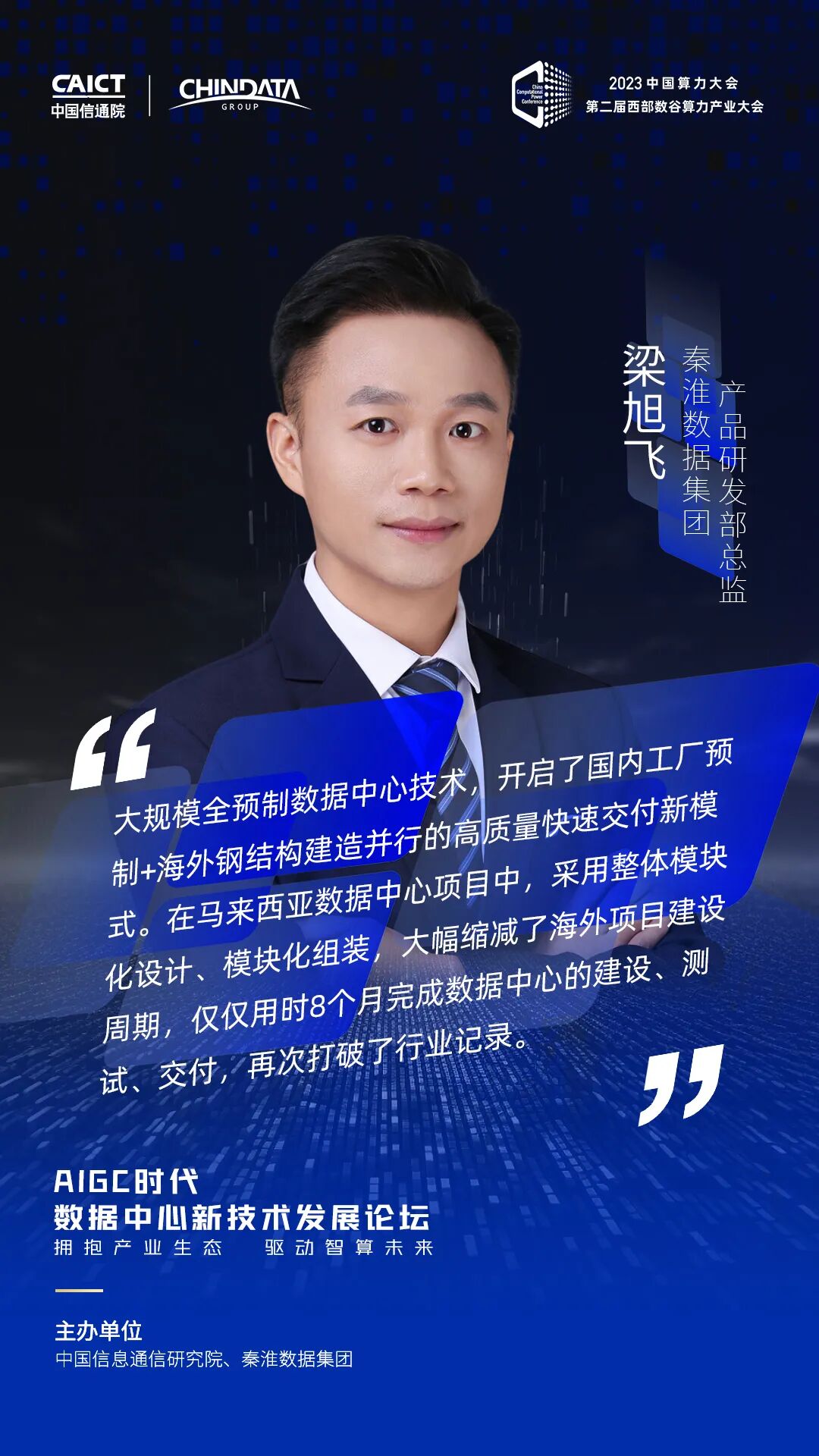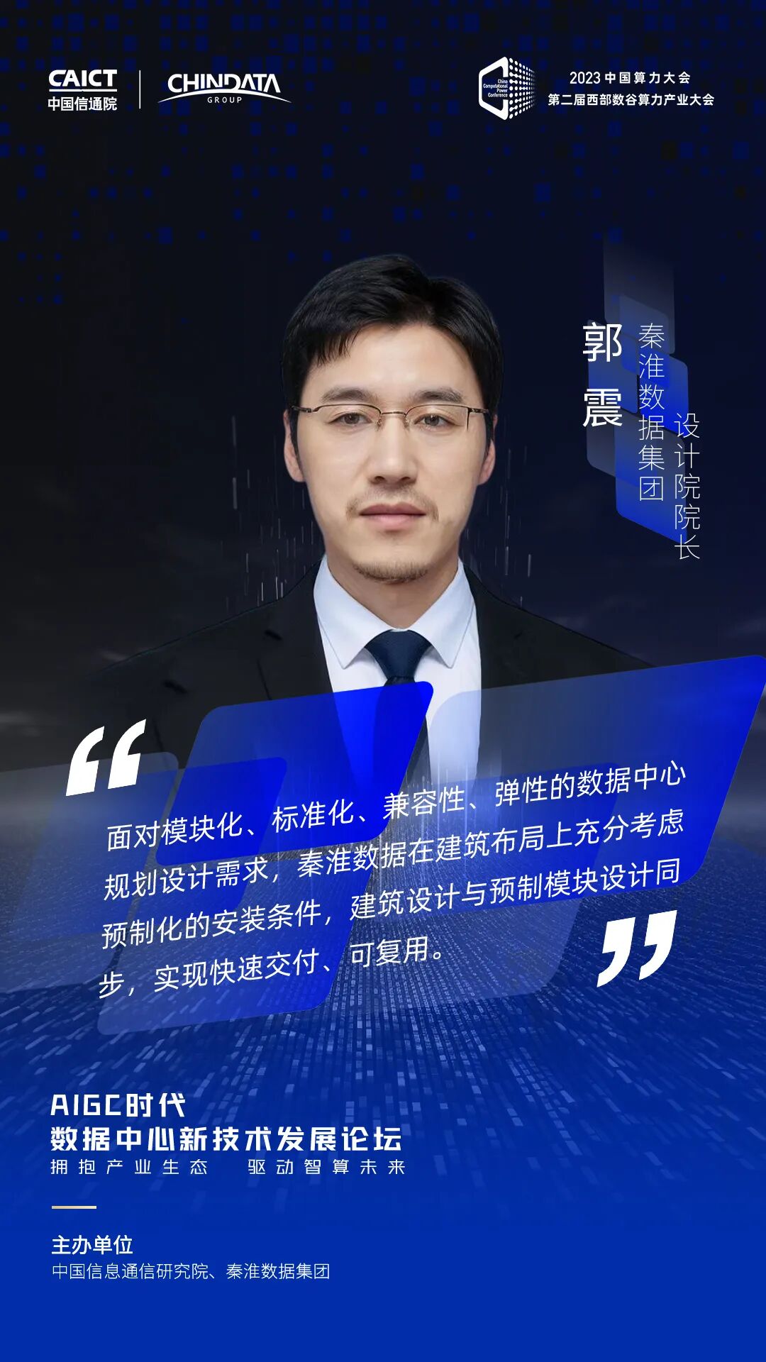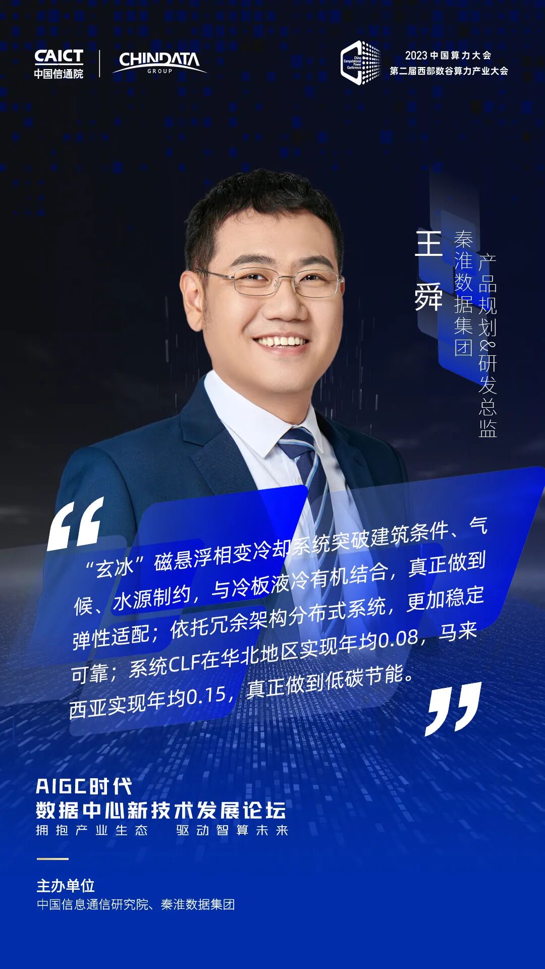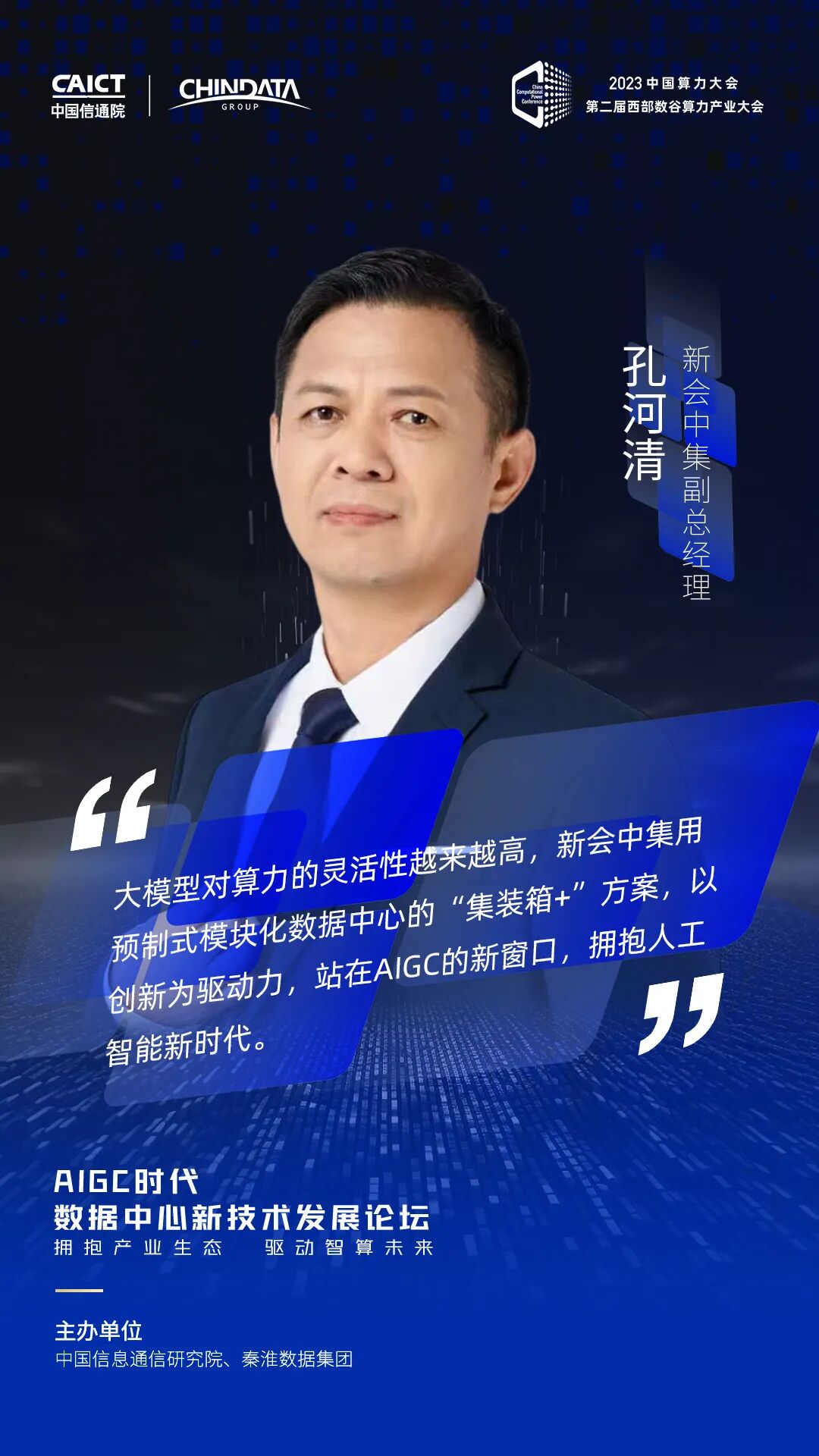 8月18-19日,2023中国算力大会在宁夏银川隆重召开。大会期间,由中国信息通信研究院和秦淮数据集团联合主办的AIGC时代数据中心新技术发展论坛于18日成功举办。论坛以“拥抱产业生态 驱动智算未来”为主题,聚焦大模型时代数据中心的技术发展趋势和创新实践路径。