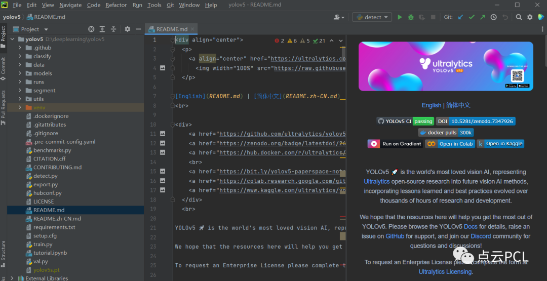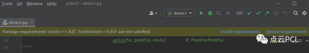 我的PC是安装了Anaconda并且安装了pycharm,首先下载yolo V5源码:https://github.com/ultralytics/yolov5.git