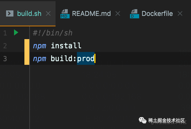 如上代码块,执行后会生成一个 build.sh 文件如下: