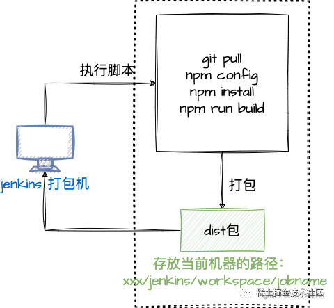 docker1.png如图所示,当前执行构建过程就是在「jenkins 本机」的一个路径中(也就是 jenkins 的 workspace)。对 jenkins 、workspace 这些不是很熟悉的可以简单理解成如下: