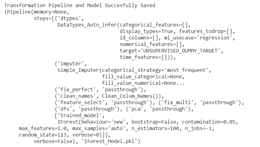 最后,我们可以保存模型。可以保存任何合适的模型。这里我们保存了 iforest 模型。save_model(iforest,'IForest_Model')