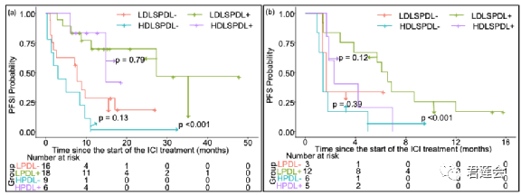 首先说明:可以根据EGFR-DLS的算法同样去构建PDL1-DLS,二者可以结合起来将病人分为四组。左侧为EGFR-DLS较高(>0.5, H)的生存曲线,右侧为EGFR-DLS较低(L)的生存曲线。