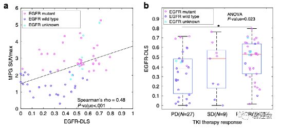Fig. 4a、b展示了EGFR-DLS和MPG、TKI治疗效果之间的关联