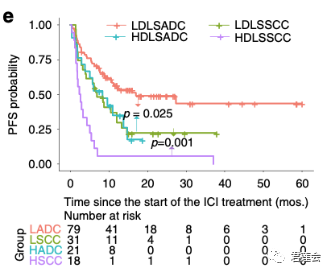 Fig. 4e 展示了EGFR-DLS针对不同NSCLC亚型且接受免疫治疗病人的分层情况