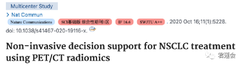 [1] Mu, W. et al. Non-invasive decision support for NSCLC treatment using PET/CT radiomics. Nat Commun 11, 5228 (2020).