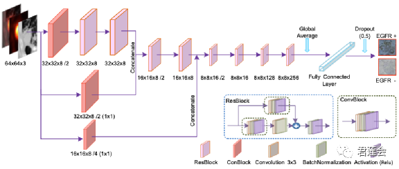 本文解决方式:基于此,本文从影像组学入手去预测EGFR突变状态,考虑到预定义的影像特征对精准的肿瘤边界勾画要求较高,本文采用深度学习的方法提取影像特征。作者构建了EGFR突变状态的深度影像标志物,并将其与预后相关联,最终提出了基于影像组学的疗法选择依据。