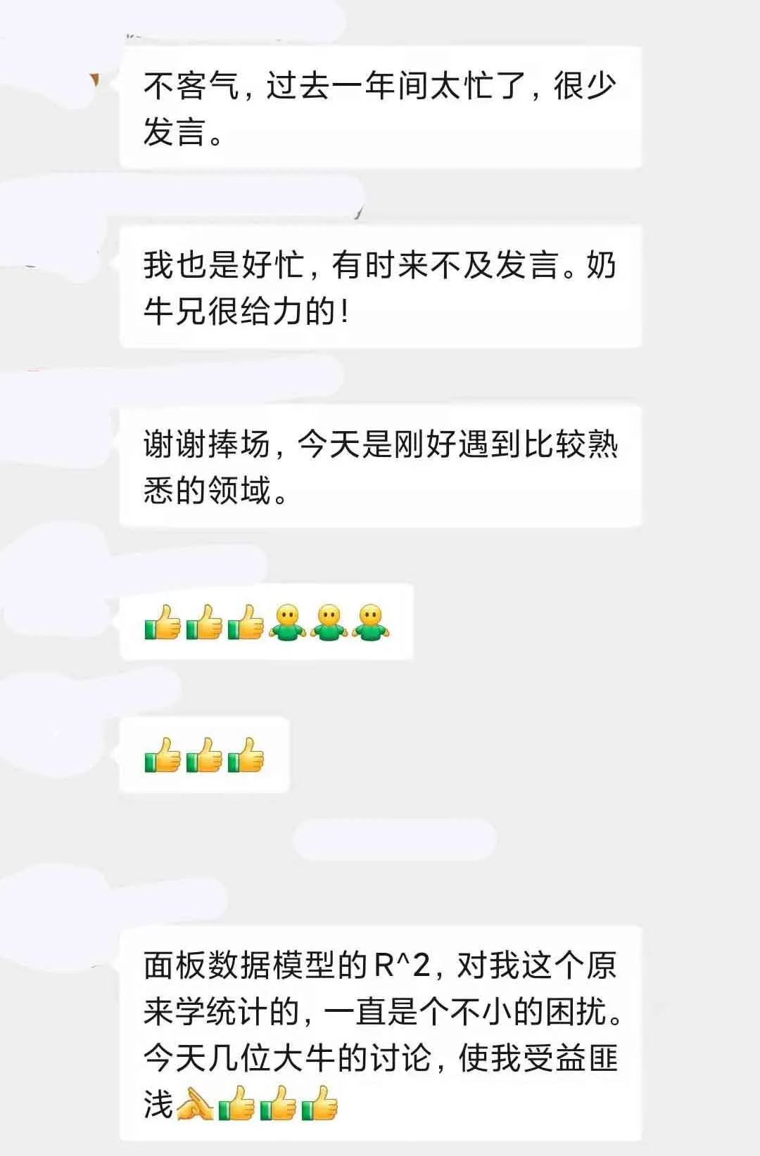 计量经济圈组织了一个计量社群,有如下特征:热情互助最多、前沿趋势最多、社科资料最多、社科数据最多、科研牛人最多、海外名校最多。因此,建议积极进取和有强烈研习激情的中青年学者到社群交流探讨,始终坚信优秀是通过感染优秀而互相成就彼此的。