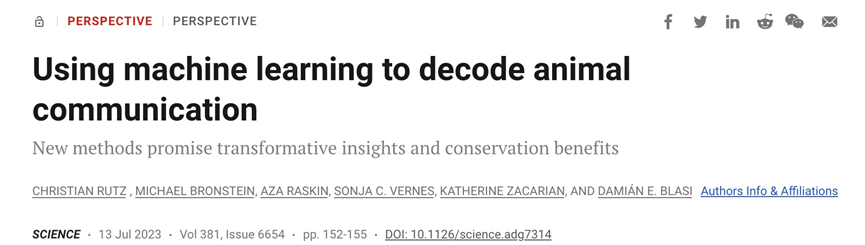 机器学习能够对广泛的物种进行系统的声音(或其他信号)输出清单,从而实现前所未有的比较分析,帮助研究人员确定不同交流系统的进化驱动因素、基因组标记、生活史相关性以及认知和感觉基础。同时,对个体主题进行的长期记录可能揭示了交流技能的产生和成熟过程。然而,这个领域的进展最重要的或许是对动物保护和福利的推动。此外,越来越多的人认识到,社会传递的信息可能会影响种群的生存能力。如果声音方言被确认为“文化标记”,机器学习方法将能够自动映射社会种群结构并确定处于丧失关键知识风险的动物群体。