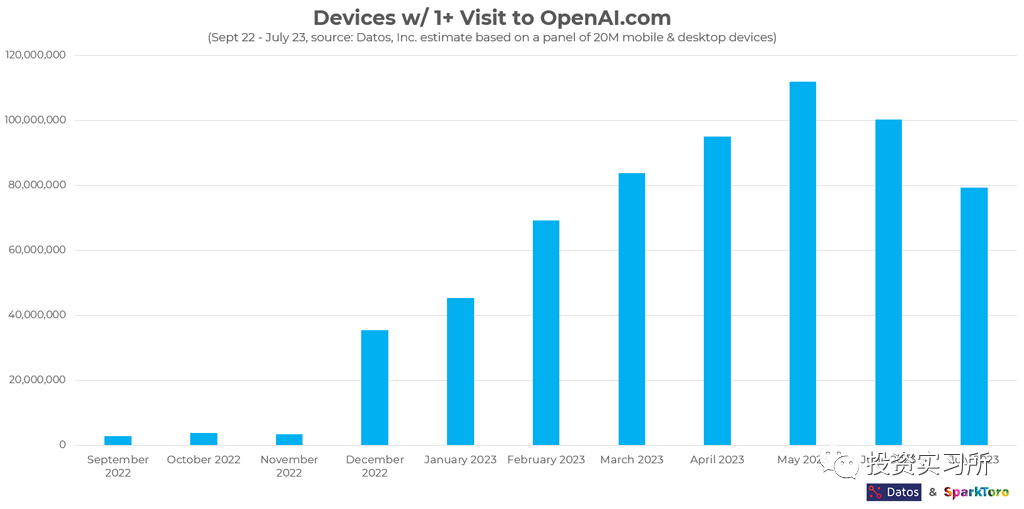 虽然市场对 AI 的应用还在不断增长,不过各种数据也显示,5 月份后,直接访问 OpenAI 网站的流量一直在下降,Similarweb 的流量统计截至 7 月份下降了 21%。而 Datos 最新的一个统计显示下降幅度达到了 29%,不过要说明的是这里只是统计了 openai.com 网站的流量,那些通过 API 的第三方和移动端数据没有做统计。