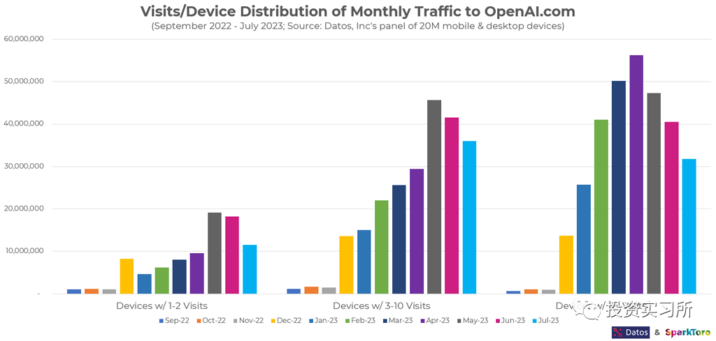 尽管移动端以及第三方的 API 可能都会对整体 ChatGPT 网站的流量有不少分流,不过 29%这么大的降幅似乎也不能用它们来解释。我理解整体肯定有一定幅度的下降,但其它因素也分流了部分流量。